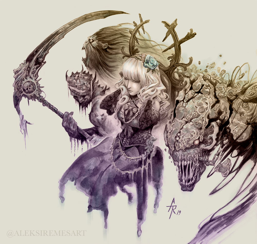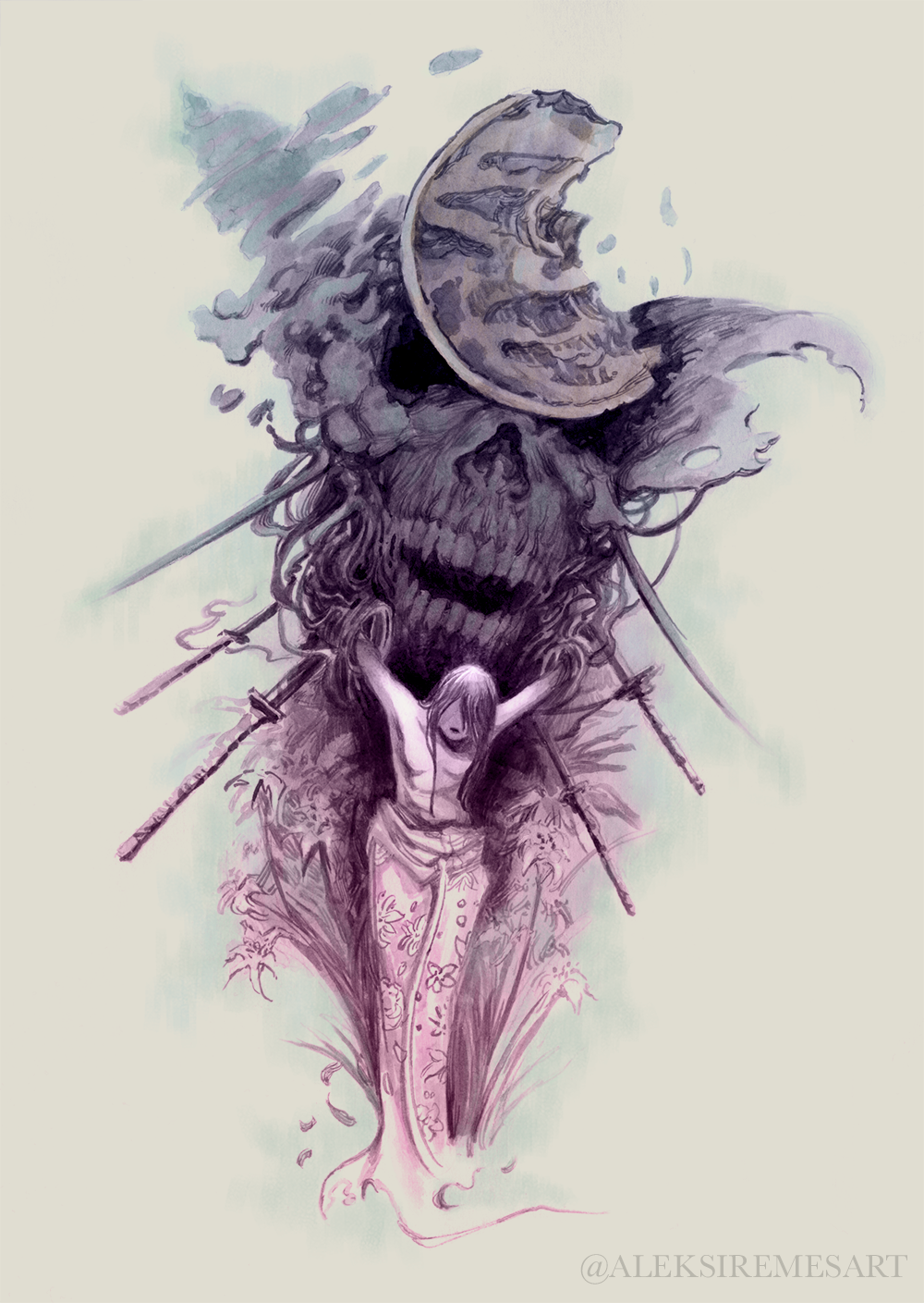 Sketches painted with Indian ink. Colors and additional editing done in Photoshop.